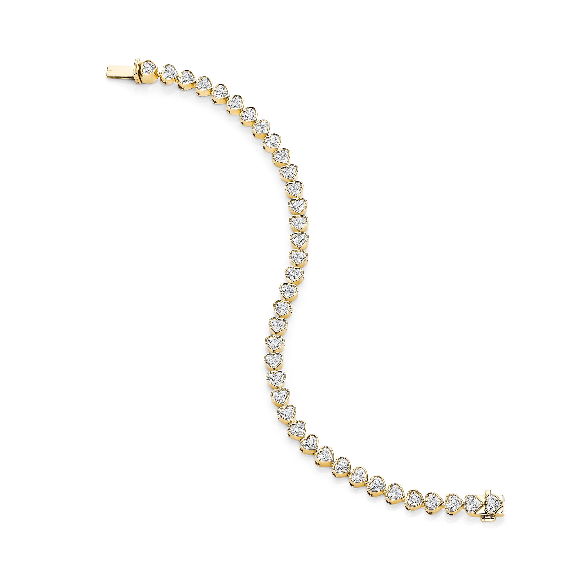 7.00ct Heart Cut Diamond Tennis Bracelet in Yellow Gold