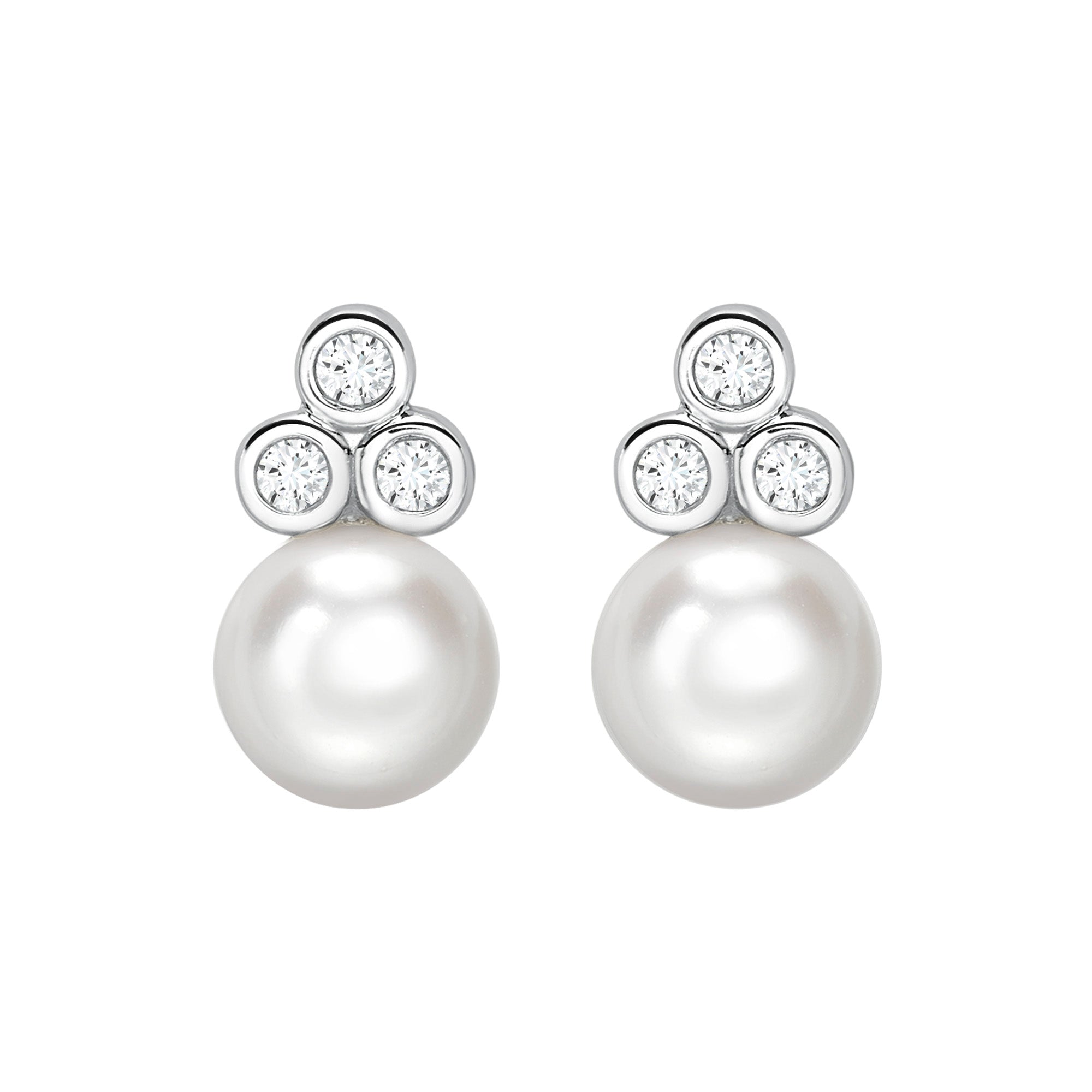 Akoya Pearl and Diamond Trefoil Earrings in White Gold