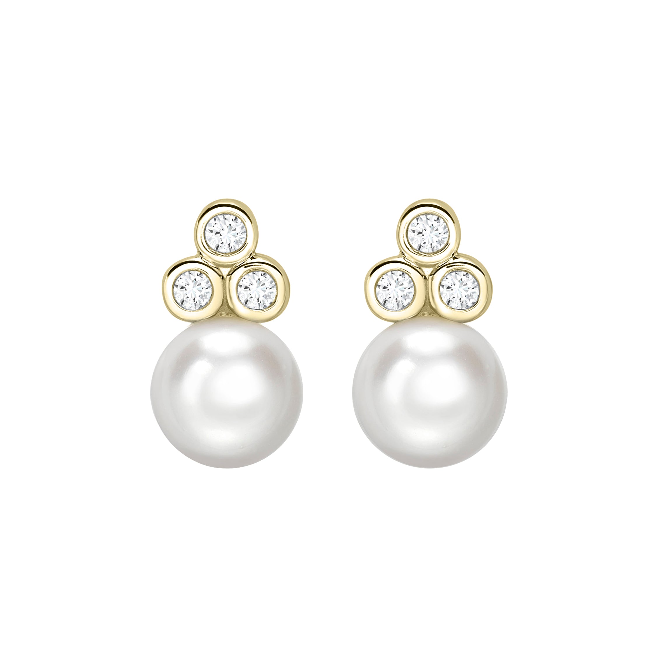 Akoya Pearl and Diamond Trefoil Earrings in Yellow Gold